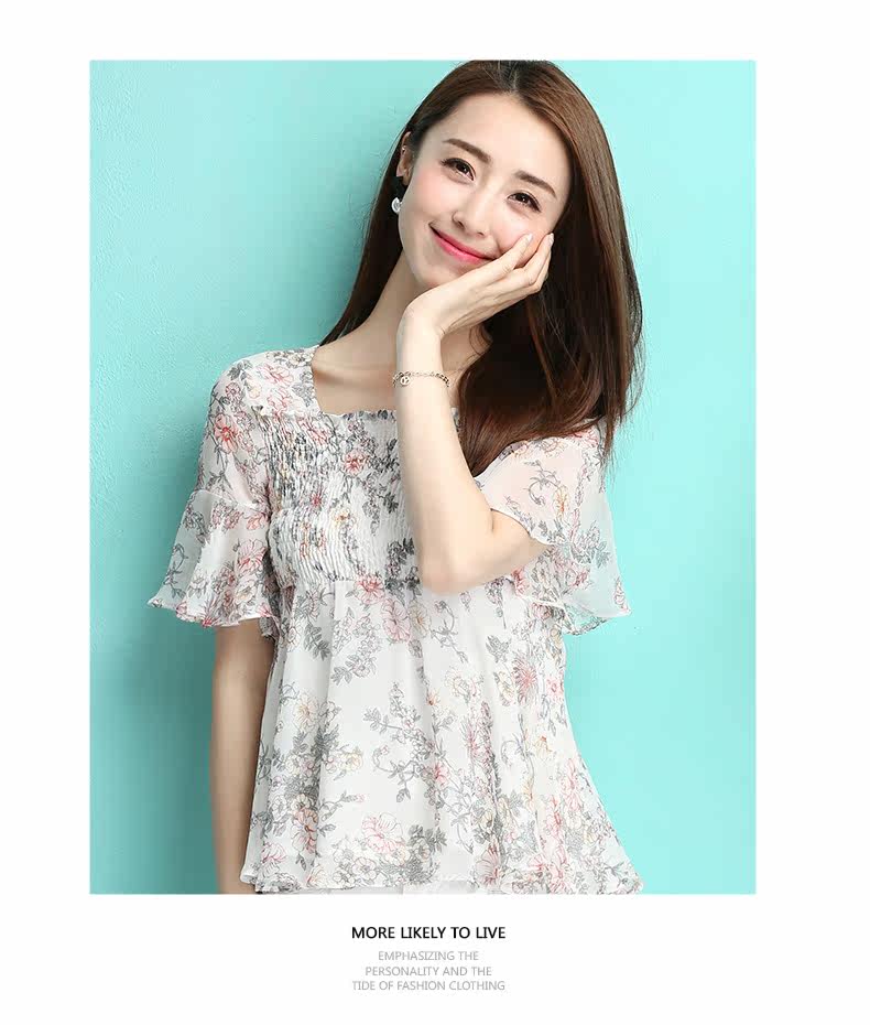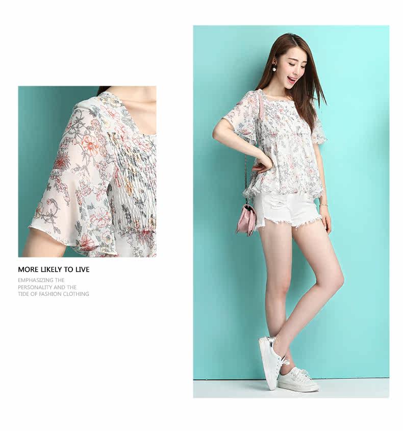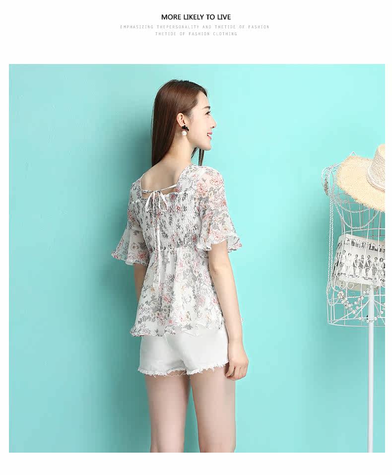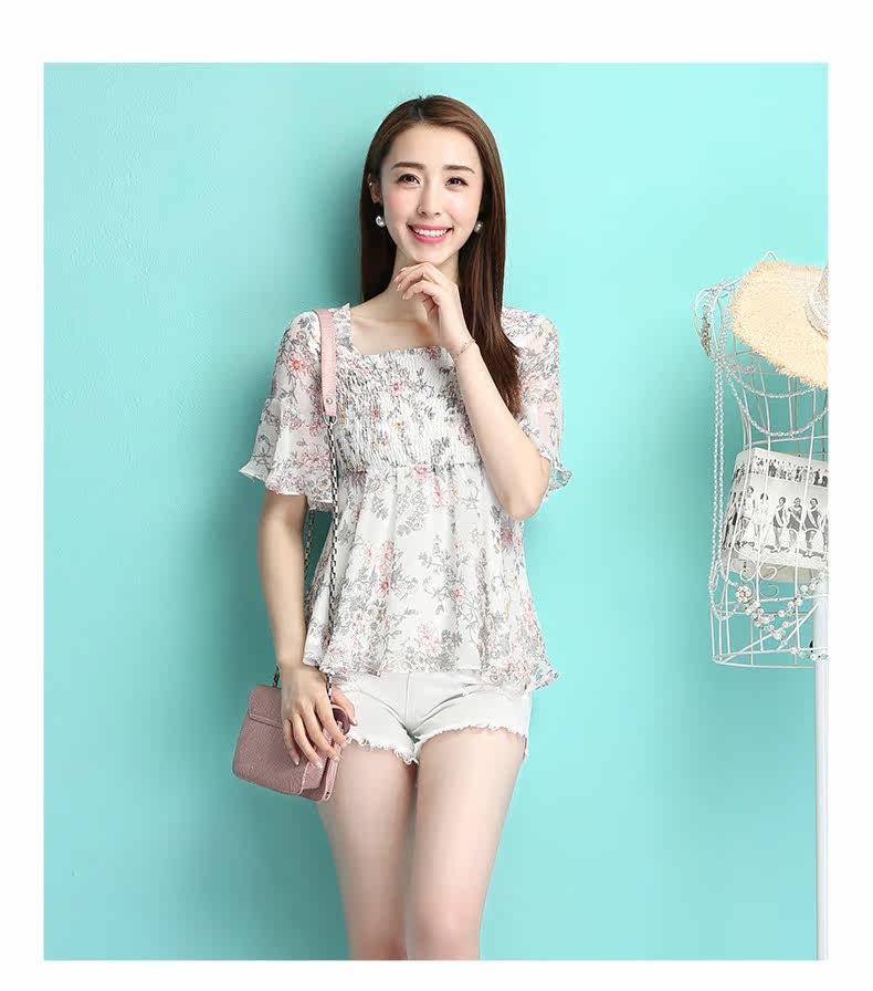 夏季新品小性感露背女装 田园风碎花雪纺衫 修身显瘦短款上衣