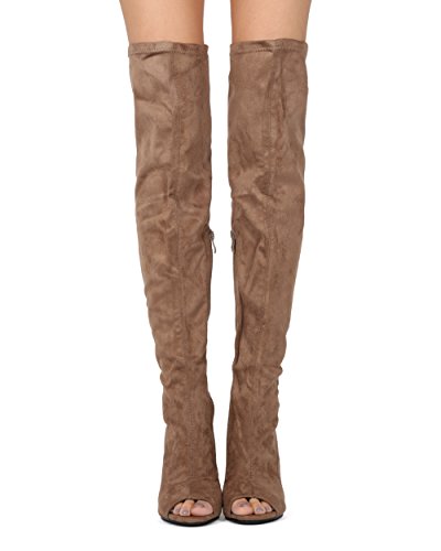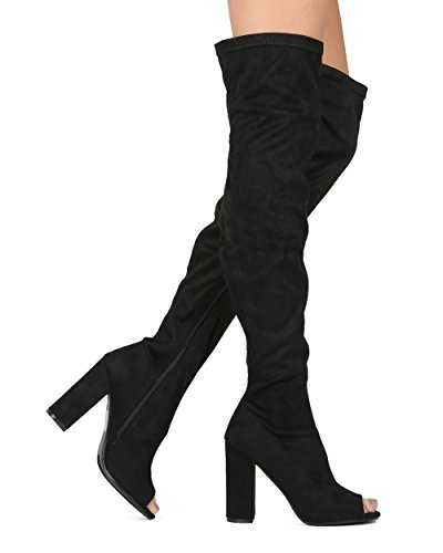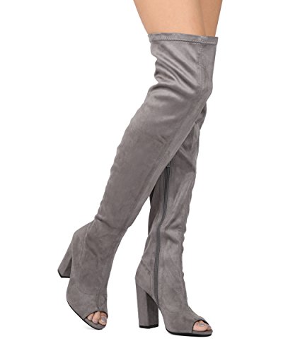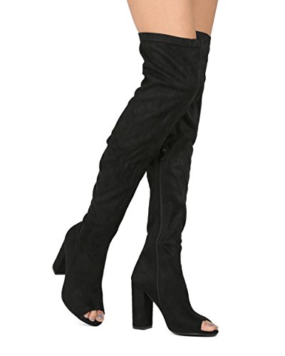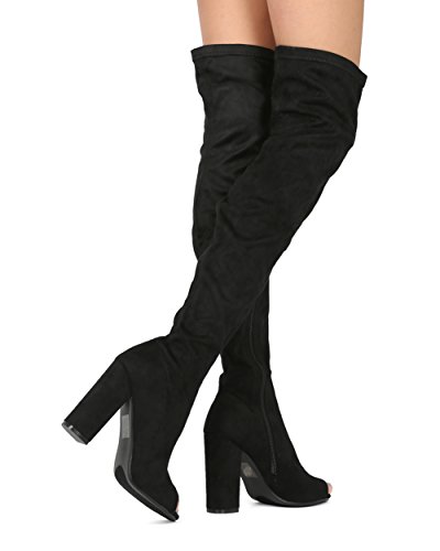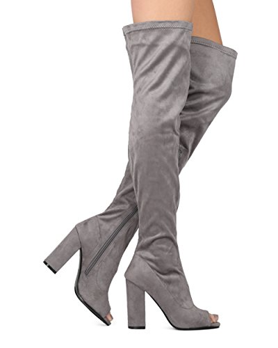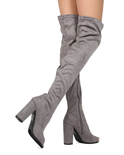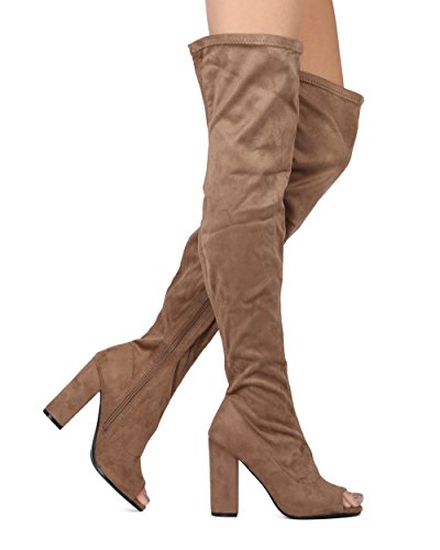 Alrisco Women Faux Suede Over The Knee Peep Toe Chunky Block Heel Boot - HF42 By Top Show Collection