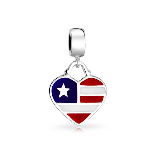 BLING JEWELRY STERLING SILVER AMERICAN FLAG STAR HEART DANGLE BEAD FITS PANDORA