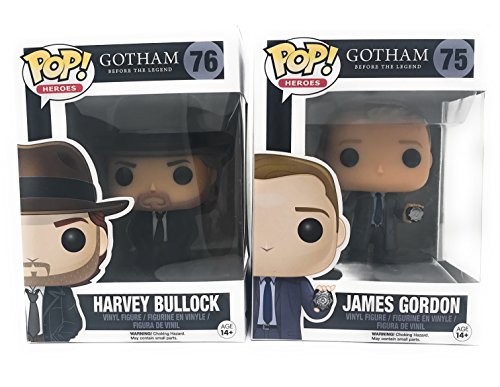 -. Feature : each pop is 3 3/4 inches tall / both pops are from the Gotham collection / James Gordon is funko #75 / Harvey Bullock is funko #76