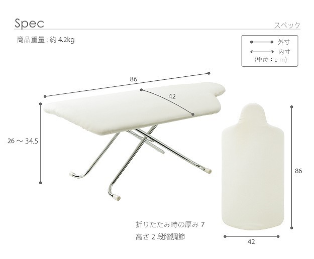 サイズ(cm):幅86x奥行42x高さ26~34.5cm・約4.2kg
