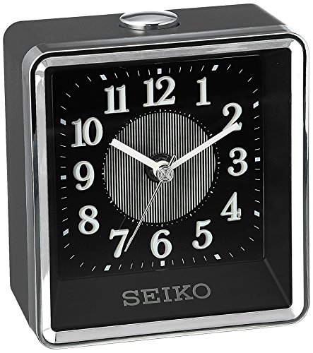 The metallic silver Seiko Contemporary Bedside Alarm Clock with Flashing El Dial comes in your choice of clock face color. This handy and handsome bedside alarm clock features easy-to-read numbers and an EL dial light that flashes when the alarm sounds. It offers a beep alarm with snooze option and requires one AA battery, not included. Over its 120 year history as a maker of fine timepieces, the Seiko name has become synonymous with cutting edge technology, ultra-precision, constant innovation and refinement. Millions worldwide rely on Seiko wristwatches to keep them on schedule. Two generations have grown up thrilling to Olympic and World Cup competitions where victory or defeat is defined within a fraction of a second, all overseen by Seiko timekeepers. 4W x 1.75D x 4.25H in.. Silver metallic plastic with choice of clock face color. Beep alarm with snooze option. EL dial light flashes when alarm sounds. Requires 1 AA battery (not included).Feature