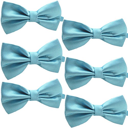 -. Feature : Get the perfect look for all your groomsmen, group or band with matching mens bow ties / Our Bow ties are made with 100% high quality polyester and are vailable in bow tie sets of 3, 4, 5 or 6. / Bow ties measures 2.5 inches (h) by 4.75 inches (l) and will fit neck sizes 13 inches to 19 inches / Available in a variety of shades of blue including baby blue, royal blue, navy blue and turquoise blue / This is a distinguished solid checkered design that is subtle but gives the tie a more classy look