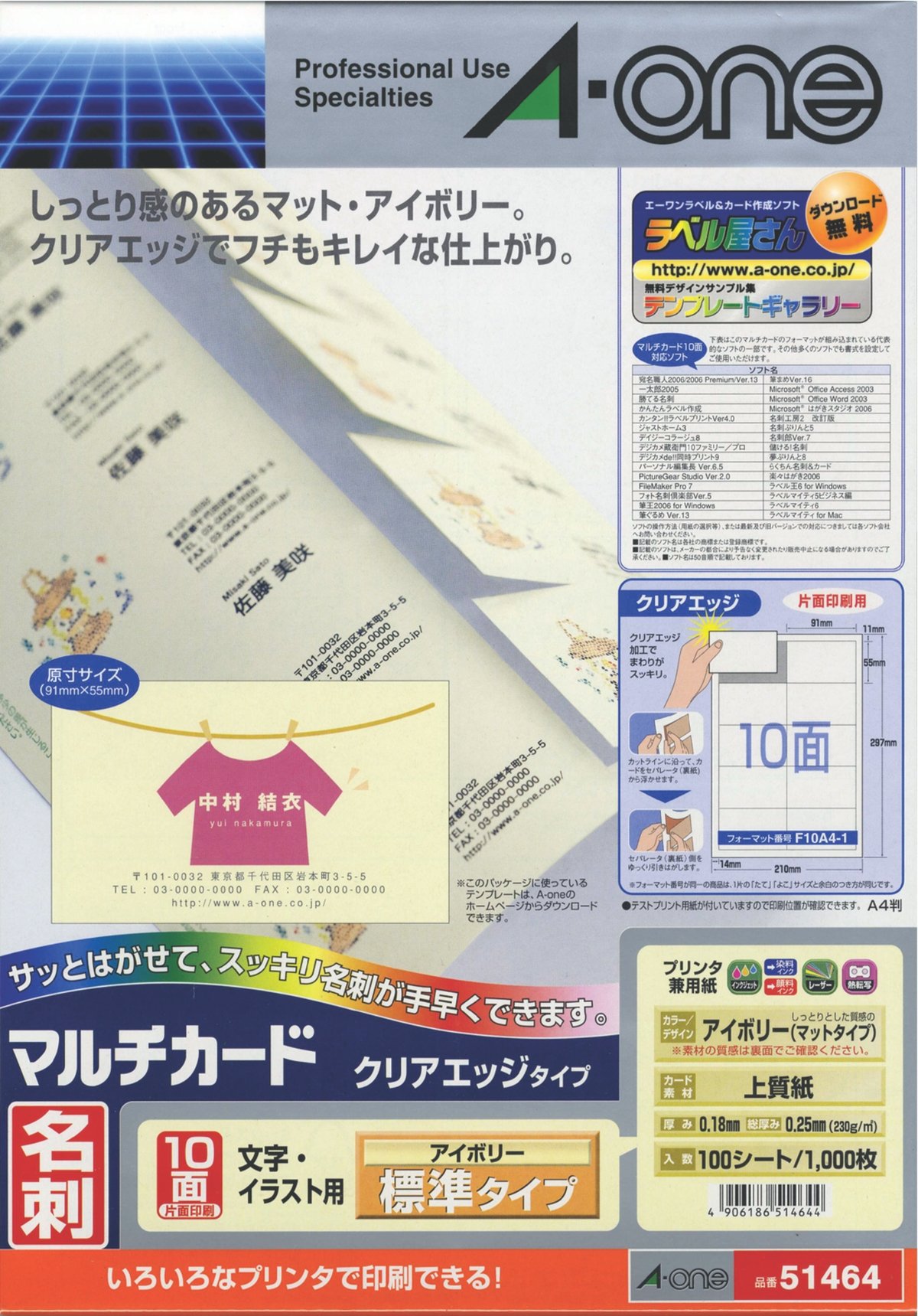 -One (A-one) multi-card various printers and paper clear edge type Ivory A4 size 10 sided business card size 100 sheets (1 000 sheets) 51464 (japan import)