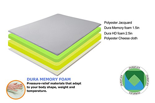 -. Brand : Olee Sleep -. Color : White -. Feature : 5-STAR LUXURIOUS COMPORT - Instantly makes any mattress more restful, comforable and supportive with our Multi Layered Memory Foam / SLEEP SOUND WITH DURA MEMORY FOAM - Comfort layer of new premium Dura Memory Foam provide additional body conforming comfort / BEST IN CLASS PREMIUM POLYESTER COVER - Our best in class premium textile cover keeps your mattress fresh and clean / 5 YEAR MANUFATURE WARRANTY - Washable Cover / Mattress Topper comes compressed and rolled for easy shipping -. Label : Grantec CO LTD -. Manufacturer : Grantec CO LTD -. PackageQuantity : 1 -. ProductGroup : Home -. ProductTypeName : HOME_FURNITURE_AND_DECOR -. Publisher : Grantec CO LTD -. Studio : Grantec CO LTD -. Title : Olee Sleep 4 Inch Thick Premium Dura Memory Foam Mattress Topper Pad with Cover by Sleeplace -. Warranty : 5 years limited manufacture warranty.