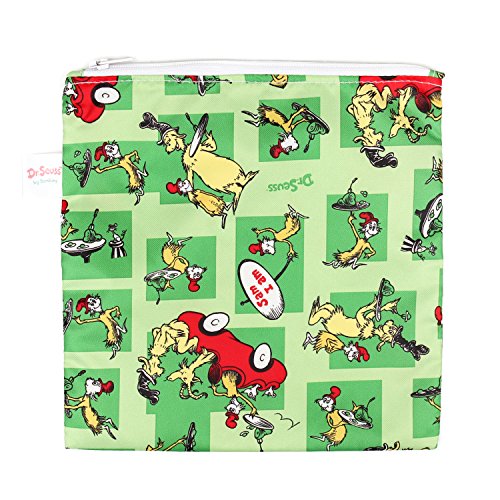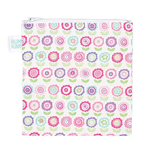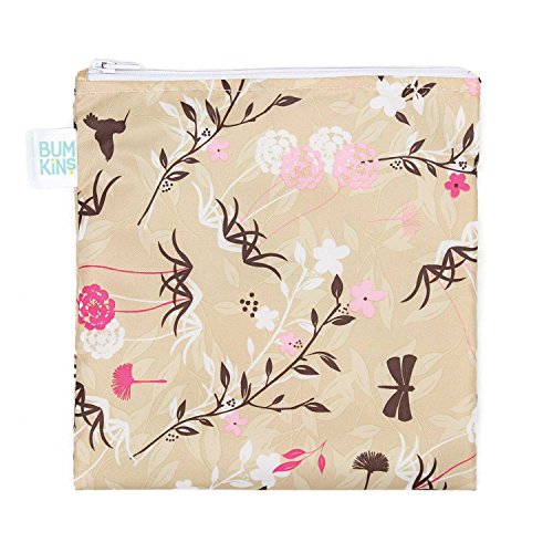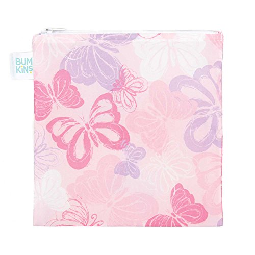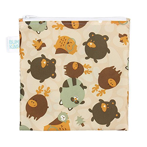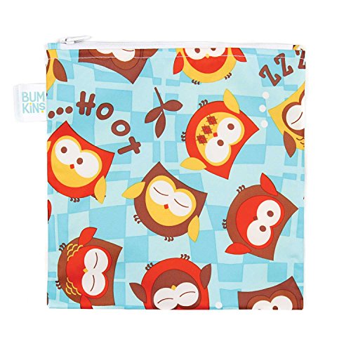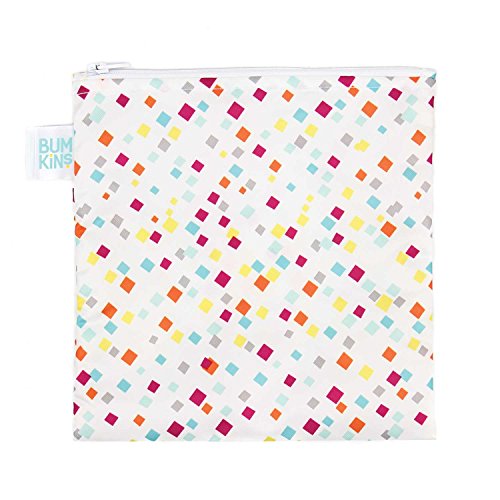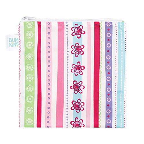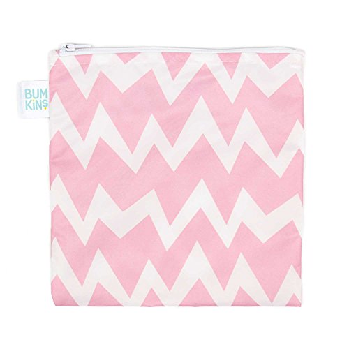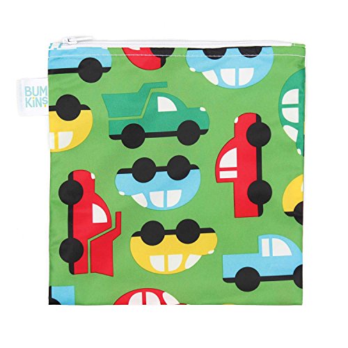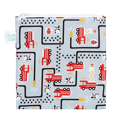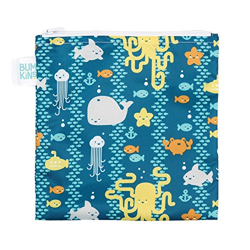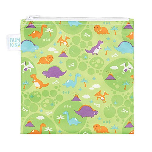 The alternative to single-use plastic baggies, snack bags are made from the same easy-wipe waterproof fabric as Bumkins award-winning SuperBibs. A smooth zipper closure doesn't hold crumbs and single ply construction means no worrying about icky stuff growing between layers of fabric. Great for food or fun, snack bags help organize lunches, toys, electronics and more. Also available in a smaller size, 2 pack option. Machine washable and dishwasher-safe (top rack) for easy cleaning. Large bag measures 7" by 7" from top to bottom. BPA, PVC, vinyl, phthalate and lead free. Designed in Arizona, responsibly made in China.Feature