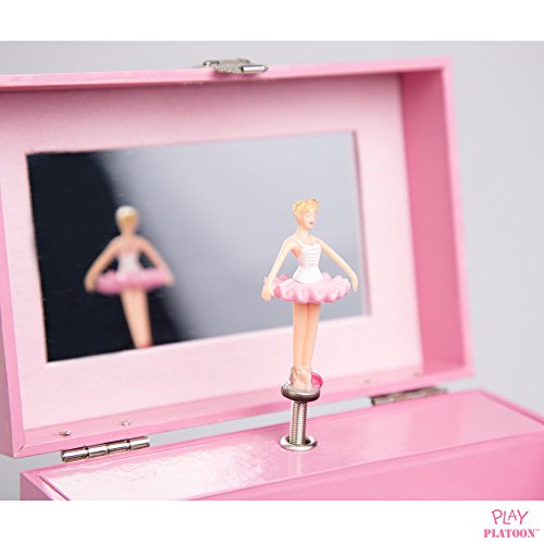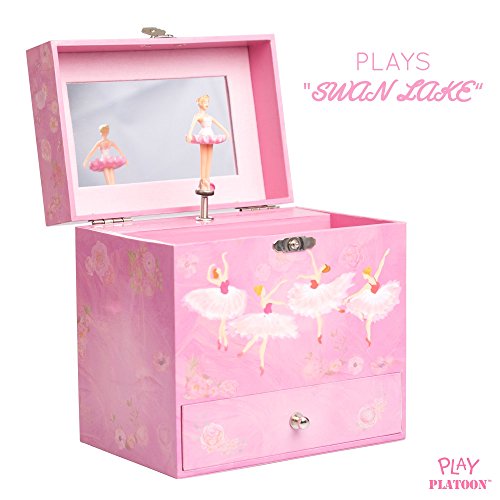 The fun pink design and elegant illustrations of this ballerina music box will enliven any girl's room. The ballet dancer music box for girls also features the enchanting theme from Tchaikovsky's beloved ballet Swan Lake.