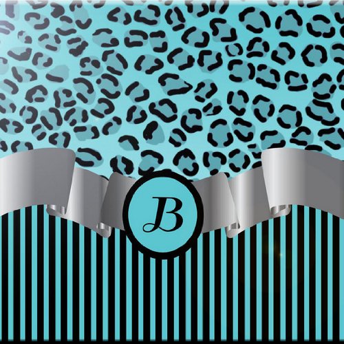 Rikki Knight RK-12intilec-2265 12" X 12" Letter "B" Sky Blue Leopard Print Stripes Monogram Design Ceramic Art Tile