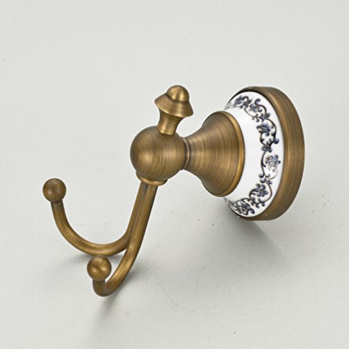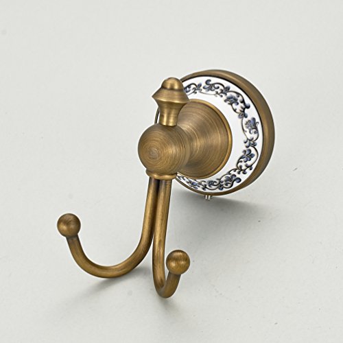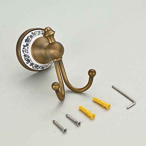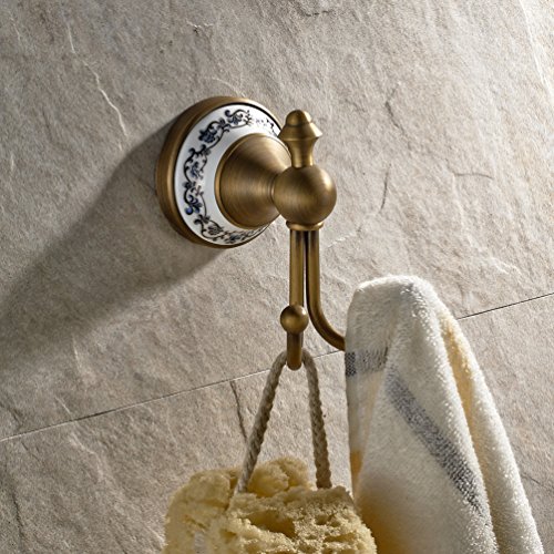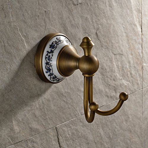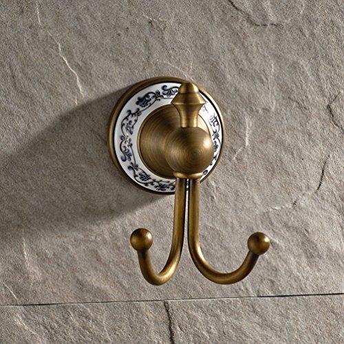 Wall Mounted Coat and Hat Hanger Antique Brass Finish Bath Towel Hanger Clothes and Robe Hook Bathroom Shower Double Hooks