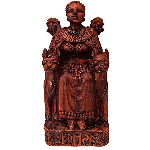 Seated Norse Goddess Freya Statue Wood Finish
