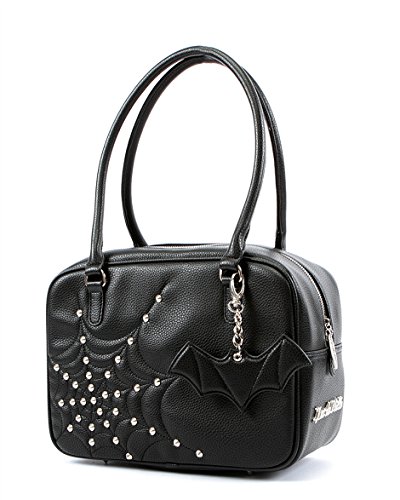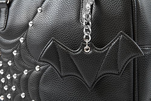 Lux de Ville Evil Garden Matte Black Tote Bag with Black Bat Bauble