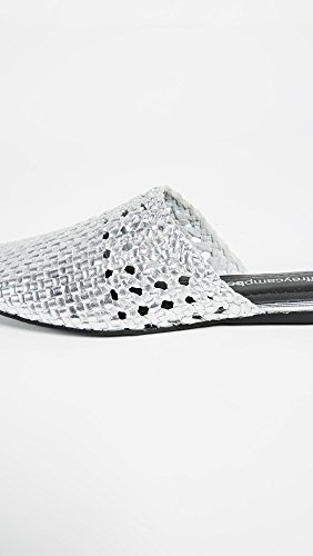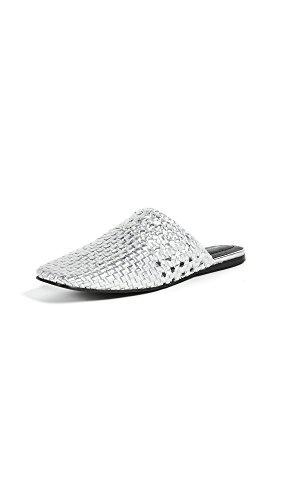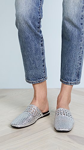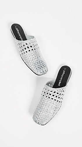 Product Description This pair of Jeffrey Campbell mules is making a modern statement with woven strips of pebbled, metallic leather. You can wear these with anything from linen resortwear to tailored, workday trousers. 0