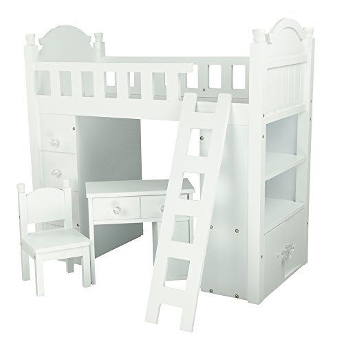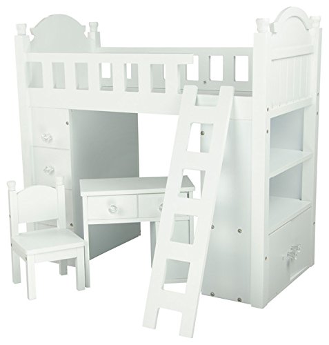 Find a cozy hideaway and a relaxing place to study with the doll bunk bed. Sturdy ladder brings all dolls to a relaxing bed and on the side of the bunk bed is a neat little desk for the dolls to study at.