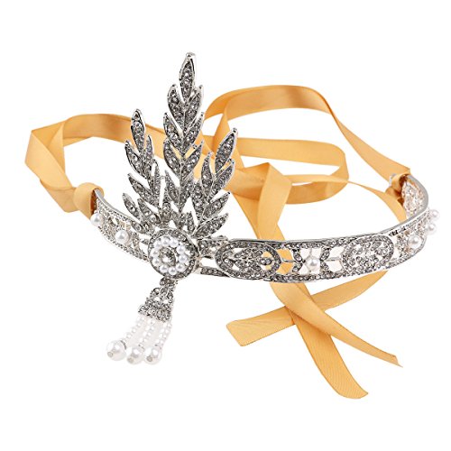 Color: Silver, golden.Material: Alloy, rhinestone, pearl, silk ribbon.