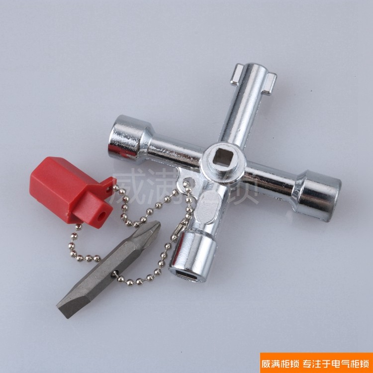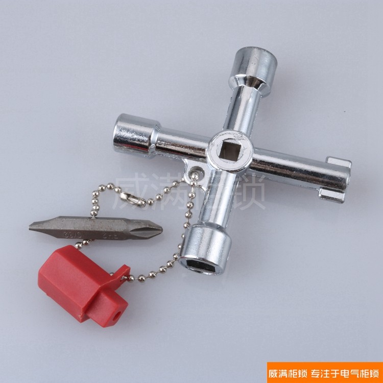 • 威满柜锁 十字多功能钥匙带配件 电控制箱机柜门钥匙 电柜钥匙