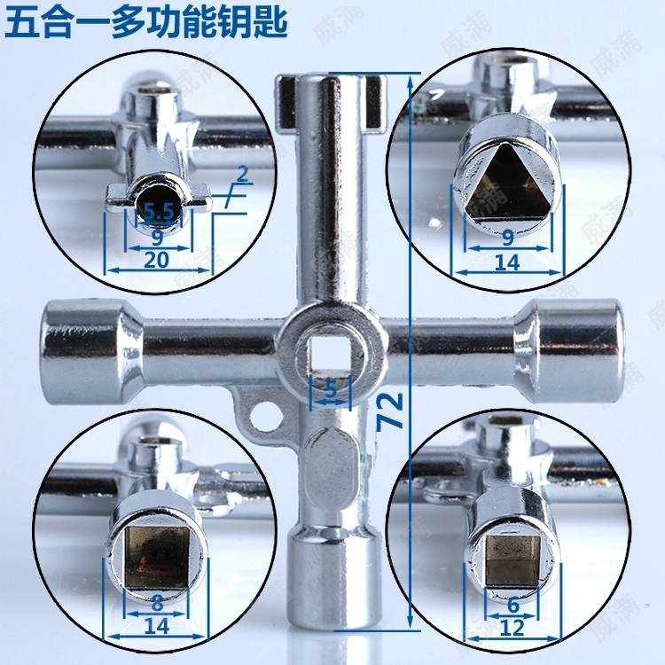• 威满 十字钥匙 电梯门钥匙 电柜暖气阀门钥匙 五合一多功能钥匙