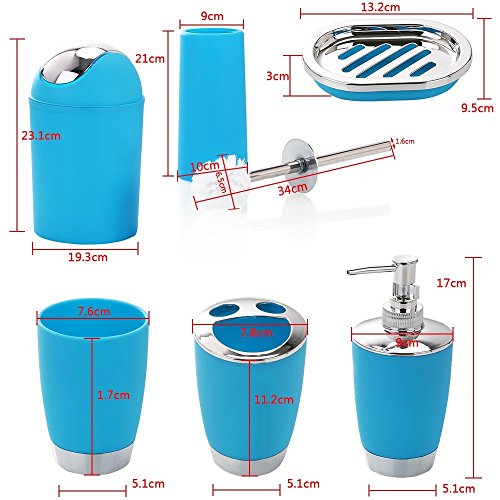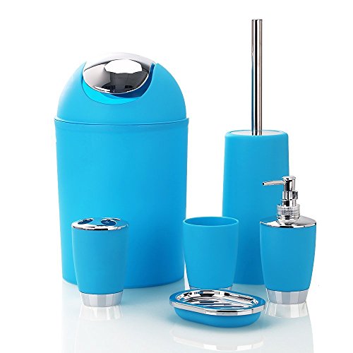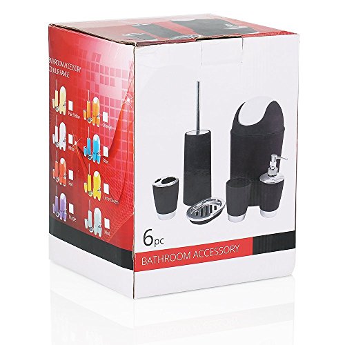 COMPLETE BATHROOM ACCESSORY SETS: This 6-Piece Bathroom Accessories Set Includes a tumbler, toothbrush holder, soap dispenser, soap dish, mini trash can and toilet brush with holder.