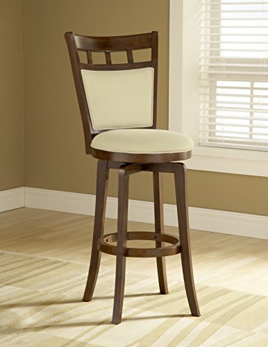 -. Title : Hillsdale Jefferson Swivel Counter Stool with Cushion Back, Brown Cherry Finish with Woven Beige Fabric