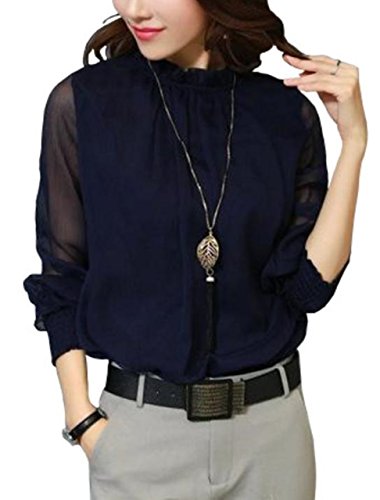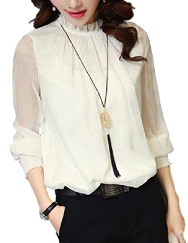 -. Title : (エリンコ モア) レディース ブラウス シフォン トップス 長袖 ハイネック 切り替え シースルー