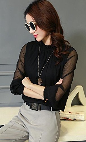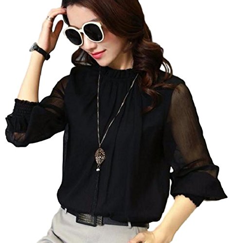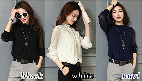 -. Feature : 女性らしさを高める、エアリー感があってフェミニンなシフォン切替ブラウスです。シフォン調素材から透ける素肌が色っぽく袖フリルが抜け感を演出でき、気になる二の腕部分をカバーしてくれるのも嬉しいポイント。 / 女性らしくリッチな表情のフリル襟なのでジャケットのインナーとしても使い勝手の良いアイテムです。アクセサリーを加える事でさらにラグジュアリーな雰囲気を醸し出します。一年中着まわし出来る優れたトップスです。 / 大人気のシルエットでスタイルアップを実現。落ち着いた色合いは、スタイリングしやすく上品な雰囲気なのでビジネスシーンにも大活躍すること間違いなし。今季はタイトスカートにINしたり、スキニーボトムやワイドパンツと合わせるのがオシャレ。 / 絶妙な透け感ありのシフォンはカジュアルなデイリーコーデとも相性が良く、パーティーや二次会、卒業式等のフォーマルなイベントでは上品な大人女性を演出してくれます。ヘビロテカラーのブラック、ホワイト、ネイビーの3カラー展開です。 / 【素材】ポリエステル 【Mサイズ】着丈63cm バスト98cm 肩幅37cm 袖丈60cm 【Lサイズ】 着丈64cm バスト102cm 肩幅38cm 袖丈61cm 【XLサイズ】 着丈65cm バスト106cm 肩幅39cm 袖丈62cm