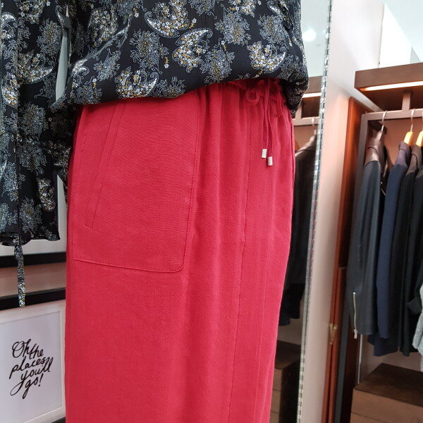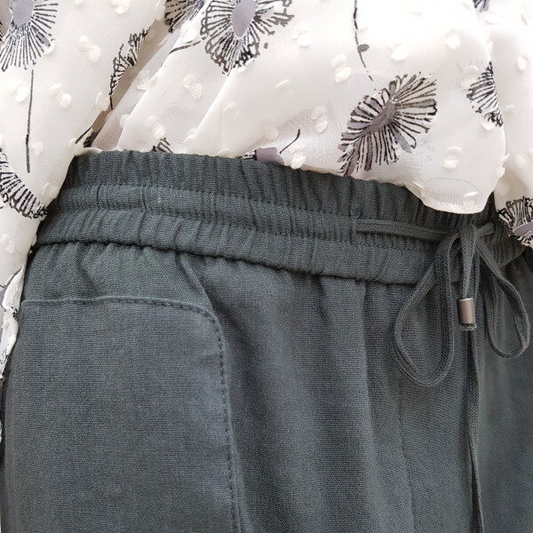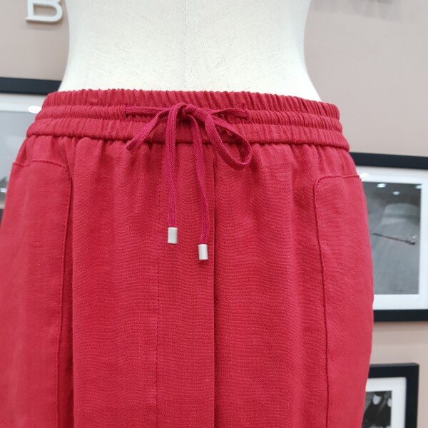 마.레이온 혼방소재로 여름에 시원하게 착용할수 있는 아이템이구요 폴리우레탄소재가 섞여 스판성도 좋습니다. 허리밴딩 스타일로 편하게 착용하실수 있습니다. 기본디자인이라 면티.블라우스 모두 매치 가능합니다.