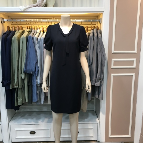 브이넥라인의 소매 포인트 원피스입니다