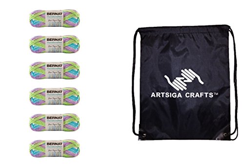 - Bundle includes 6-Pack Bernat Handicrafter Cotton Yarn Stripes Violet 162104-04317 with 1 Artsiga Crafts Project Bag