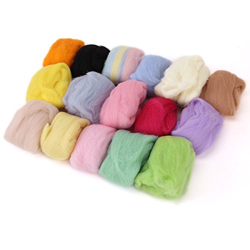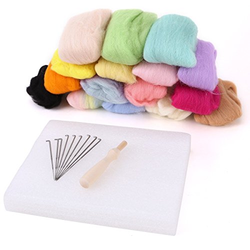 160G 16 Colors Pure Wool Felt Craft Tops Felting Set Needle Kit Starter Felted Mat