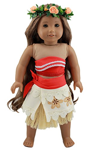 -. Feature : Moana Adventure outfits fit 18 inch American Girl doll. / Package including list:1* top,1* belt,1* removable sarong, 1* grass skirt,1*garland / Item Include the outfits Only ! / Great gift for birthday and holidays. / New design,Inspired by Disney New P.R.Incess Moana.