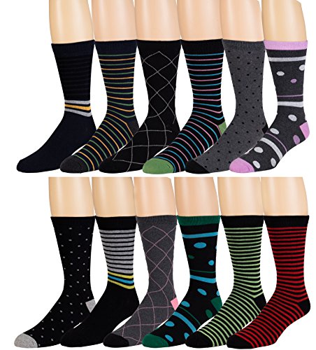 -. Title : Men’s Cotton Blend Dress Socks - 12 Pairs of Asstd Patterns and Colors - by ZEKE