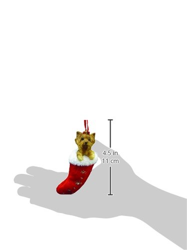 Yorkie Christmas Stocking Ornament, Hand Painted and Stitched Detail