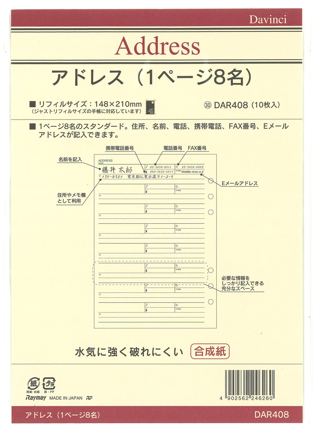 Reimeifujii Da Vinci refill address eight A5 DAR408