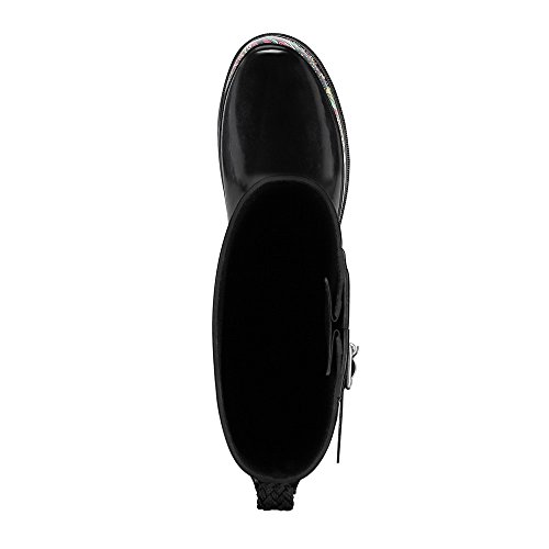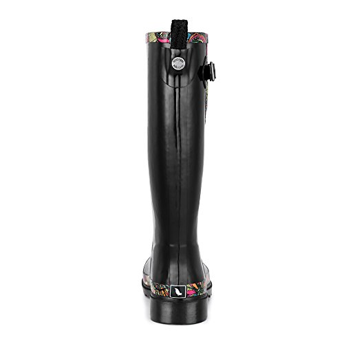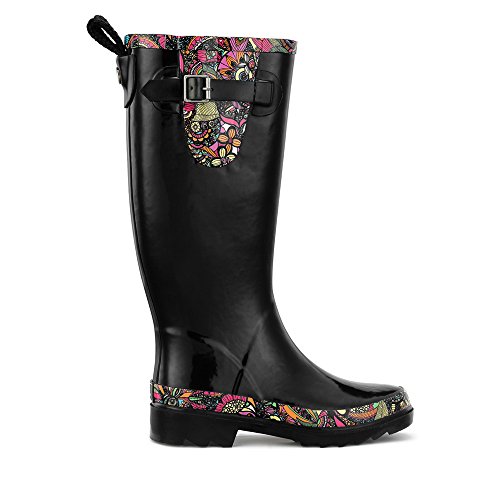 -. Feature : Patterned rain boot with lugged outsole featuring adjustable buckle strap at shaft / Jersey lining / Padded footbed