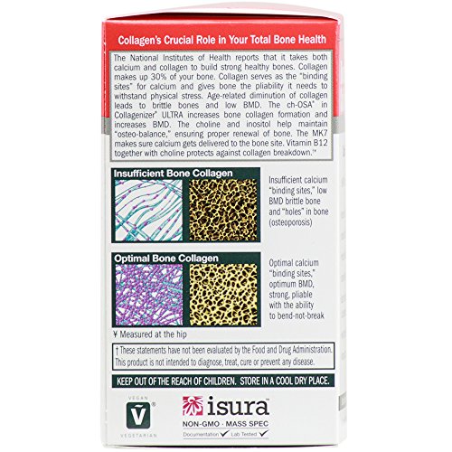 Our bones are perpetually rebuilding. Bone Collagenizer Ultra provides your body with the tools to repair and form healthy bones. Ingredients like ch-OSA encourage the generation of collagen, which in turn binds with calcium to support more resilient bones. Our formula is more than a collagen supplement, though. We include vitamin B12 to help protect your new collagen, and choline and inositol to help ensure your bones are renewing fast enough to stay healthy. Time wears bones down, but Bone Collagenizer Ultra helps them come back stronger.Feature