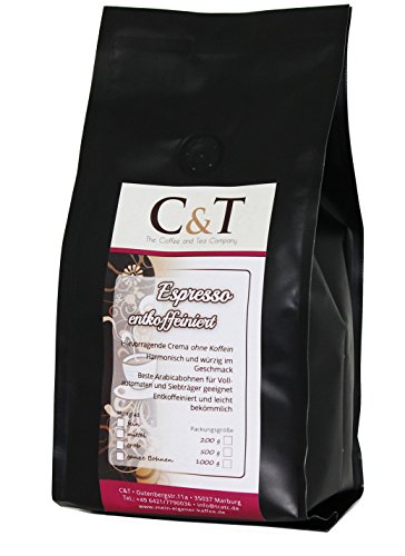 -. Binding : Lebensmittel & Getränke -. Brand : UNSER ESPRESSO -. EAN : 4260326846287 -. Feature : Espresso Crema entkoffeiniert 6 x 200 g gemahlen, perfekt für die Siebträger / Hervorragende Crema, würzig und run dim Geschmack! / Frisch in der hauseigenen Kaffeerösterei veredelt / entkoffeiniert und leicht verträglich / Für alle Zubereitungsmethoden geeignet! -. Label : The Coffee and Tea Company -. Manufacturer : The Coffee and Tea Company -. PackageQuantity : 3 -. ProductGroup : Grocery -. ProductTypeName : GROCERY -. Publisher : The Coffee and Tea Company -. Studio : The Coffee and Tea Company -. Title : Espresso entkoffeiniert - ESPRESSO CREMA- Kaffee entcoffeiniert 6 x 200 g gemahlen