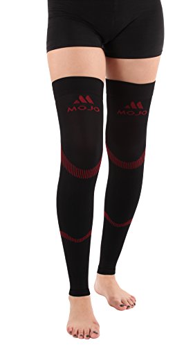 Studio : Mojo Compression socks Publisher : Mojo Compression socks Product Description MoJo Sports Recovery Thigh Sleeve High Performance - High Quality - Graduated Compression - Weekend warriors are discovering what professional athletes have known for years - the benefits of using compression therapy to speed up their recovery after a strenuous workout. By adding the technology of graduated compression, this sports Recovery Thigh Sleeve gives you the added benefit of improved circulation while performing any sport or leisure activity. 20-30mmHg Graduated Compression that is strongest at the ankle and gradually diminishes as it goes up the leg - not just providing a Squeezing effect like most other available compression products. The graduated compression helps fight the force of gravity and circulate blood back to the heart and lungs more efficiently. When blood is properly circulated, it provides much-needed oxygen and nutrients to tired muscles that have been, or are being, deprived during a workout MoJo socks provide more oxygen, more energy, an improved metabolization of lactic acid, and faster recovery so you can return to training quicker than ever. **** For propper fit Measure by (A)nkle (C)alf circumference Measurements - Small: A=6.5-8.5 C=10.5 -15 Medium: A=8-10 C= 11.5-16 Large:A=9.5-11 C=12.5-17 XL: A= 11-13 C= 13-18 0