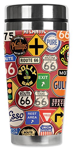 Mugzie 1003-MAX "Gas Station Signs" Stainless Steel Travel Mug with Insulated Wetsuit Cover, 20 oz, Black
