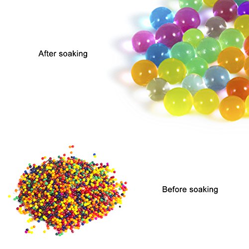 Water beads could grow magically after 1-6 hours soaking in water, once expanded, it could be as big as 13-20 mm.