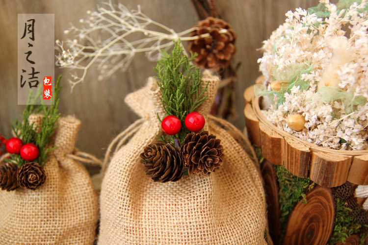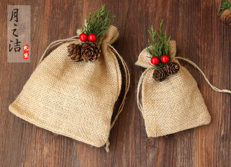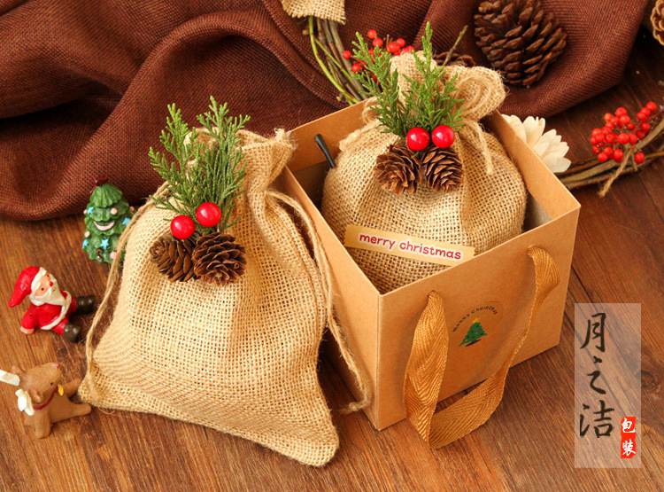 【品名】文艺复古森系圣诞苹果袋平安夜糖果饼干袋天然麻袋礼品袋