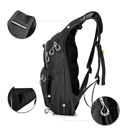 -. Brand : KUKOME -. Department : Unisex -. Feature : The lightweight and adjustable and breathable padded shoulder and chest straps to meet different requirements for both men and women, much more comfortable / With unique helmet net which is a good helper for outdoor cycling. / The small front pocket is very practical,suitable for storing small articles such as mobile phone. / Featured with a water bag with isolation layer to keep the temperature inside the water bag / High-visibility reflective stripes to improve visibility when in fog days or at night -. IsAutographed : 0 -. IsMemorabilia : 0 -. Label : Boduaner -. Manufacturer : Boduaner -. MPN : 440 -. PackageQuantity : 1 -. PartNumber : 440 -. ProductGroup : Sports -. ProductTypeName : OUTDOOR_RECREATION_PRODUCT -. Publisher : Boduaner -. Size : 43cm*20cm*15cm ; 12L -. Studio : Boduaner -. Title : KUKOME Waterproof Outdoor Sports Backpack Shoulder Belt Bag for Biking Cycling Traveling Camping Hiking outdoor travel Hydration Pack