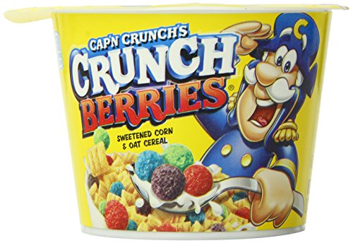 Cap'n crunch's crunch berries cereal cups are a convenient and easy way to get going in the morning. Enjoy the crunchy sweetened corn and oat biscuits with delicious fruit flavored berry shapes with our single serve cups. Each spoonful of cap'n crunch's crunch berries cereal cups combines sweetened corn and oat biscuits with delicious fruit flavored berry shapes. Fortified with seven essential vitamins and minerals, it provides a balanced breakfast you can feel good about eating when paired with low-fat milk and fruit or a glass of 100% juice.Feature