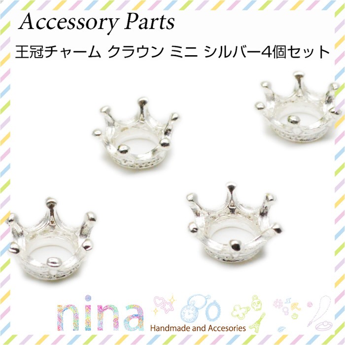 ■商品名:王冠チャーム クラウン ミニ シルバー 4個セット