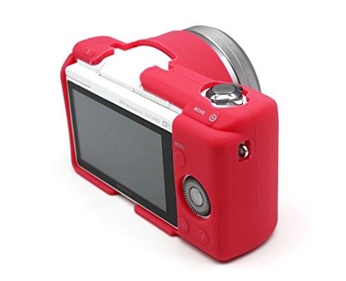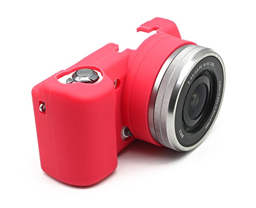 CEARI Flexible Silicone Camera Case Protective Cover Skin for Sony Alpha A5000 A5100 with 16-50mm Lens + MicroFiber Clean Cloth - Hot Pink