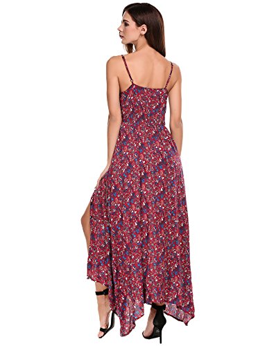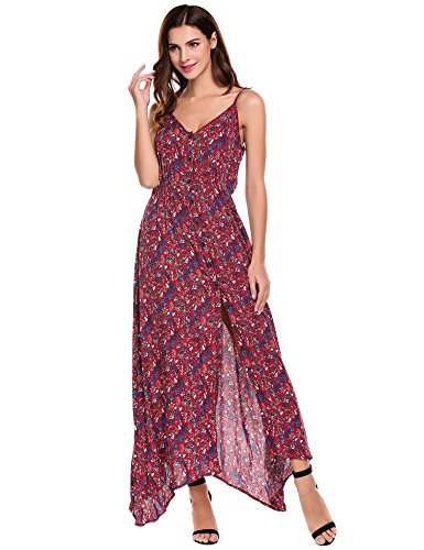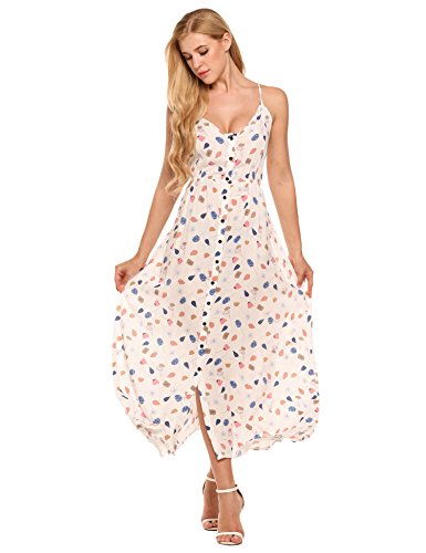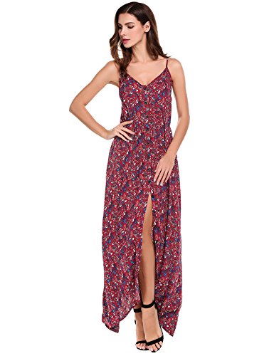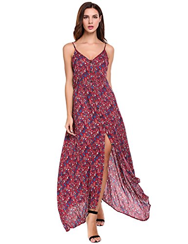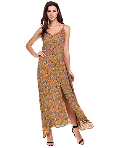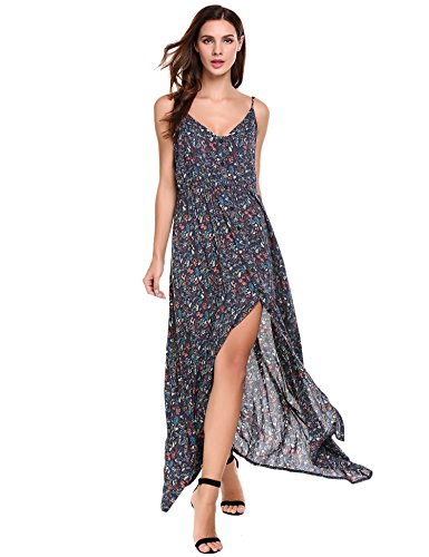 Feature: Button Up, Split Hem, V Neck, High Waist, Full Length, Adjustable Spaghetti Strap.