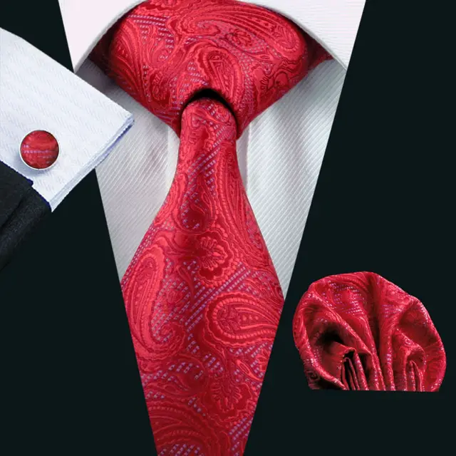 LS-293 뜨거운 새로운 남성 넥타이 페이즐리 100% 실크 자카드 짠 Gravata 넥타이 손수건 커프스 세트 남성 정장 웨딩 파티 비즈니스