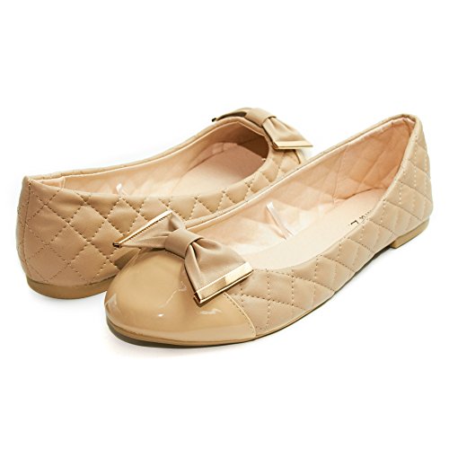 -. Title : Sara Z Womens Quilted Ballet Flat Slip On Shoes With Bow and Patent Leather Toe (See More Colors and Sizes)