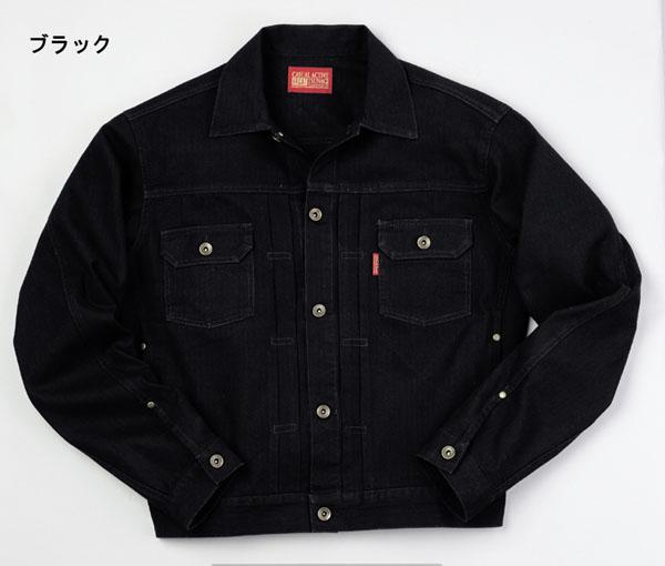仕様バイオウォッシュ加工、袖口ボタン、補強リベット、デザインボタン、季節:春・秋・冬