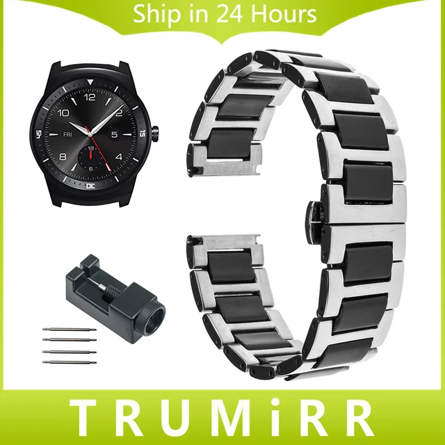 | [해외]22 미리메터 세라믹 및 스테인레스 스틸 손목 + 링크 리무버 lg g 시계 w100 w110 도시적인 w150 밴드 butterfly 버클 스트랩 팔찌 |