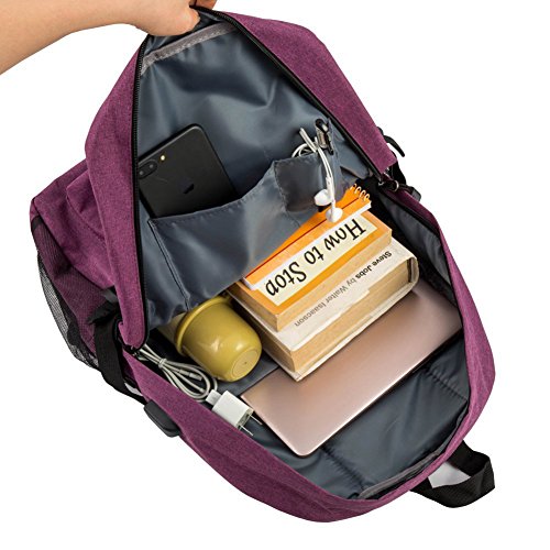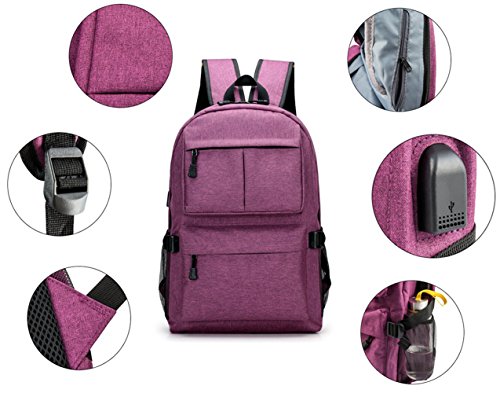 Slim Laptop Backpack, Viyear Business Bag with USB Charging Port Fit 15.6 Inch Computer and Notebooks, Purple Water Resistant Travel Backpack for Men and Women