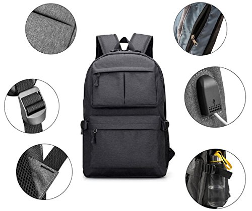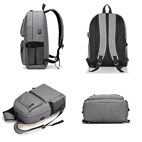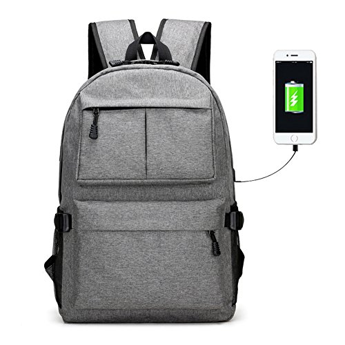 College Laptop Backpack, Viyear Slim Travel Daypack with USB Charging Port Fit 15.6 Inch Computer, Water Resisitant Business Bag for Women and Men Grey